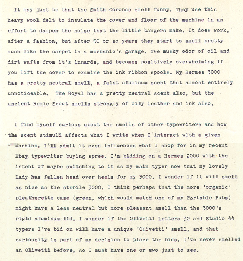 Musings on the odors of typewriters. A typecast dispatch by the Right Reverend Theodore Munk.